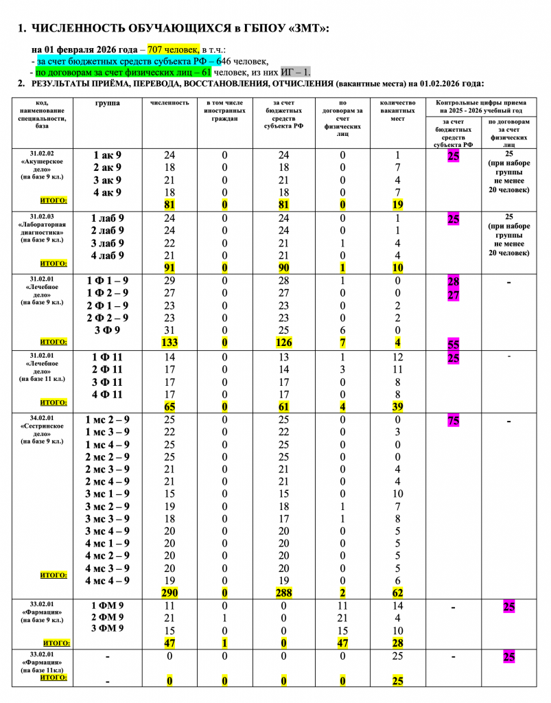 Зачисление студентов